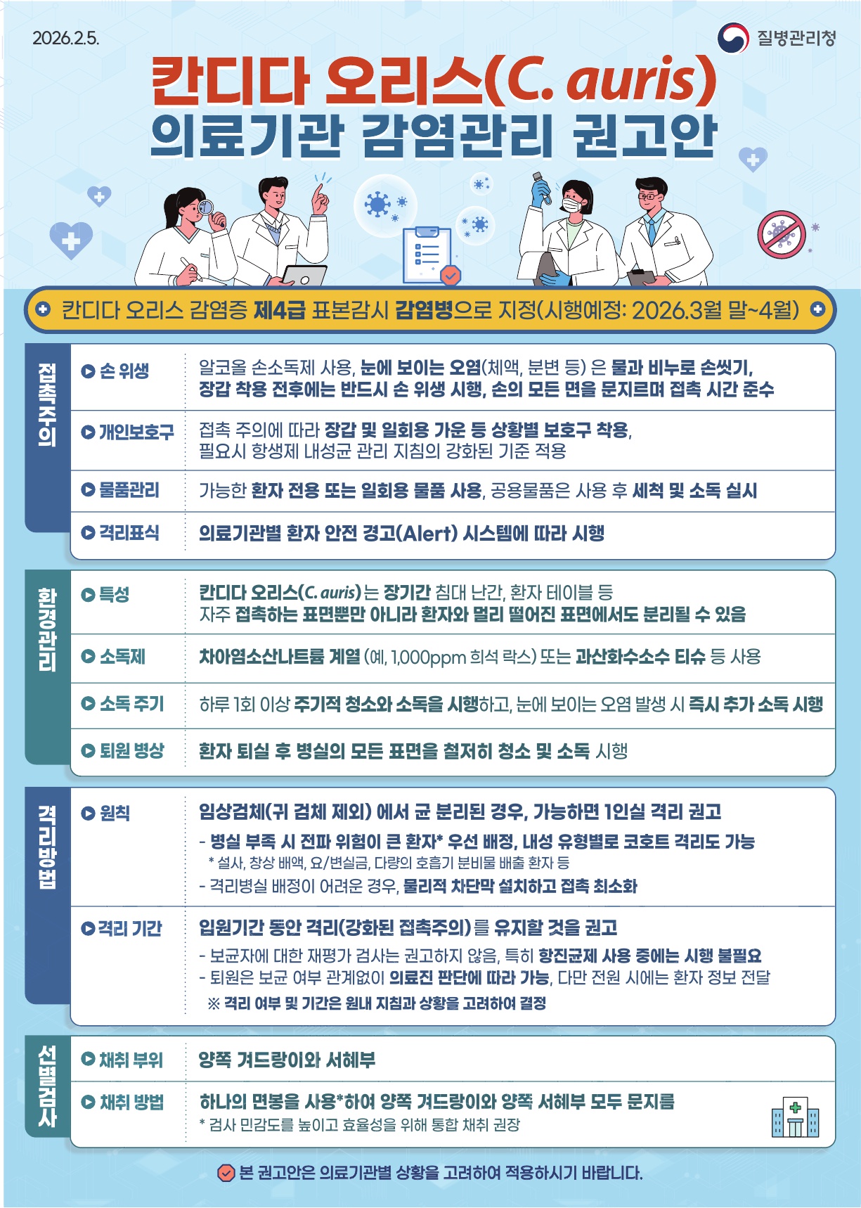 '2026년도 의료관련감염병 관리지침'을 안내드립니다.업무에 참고하여 주시기 바랍니다.출처: 질병관리청