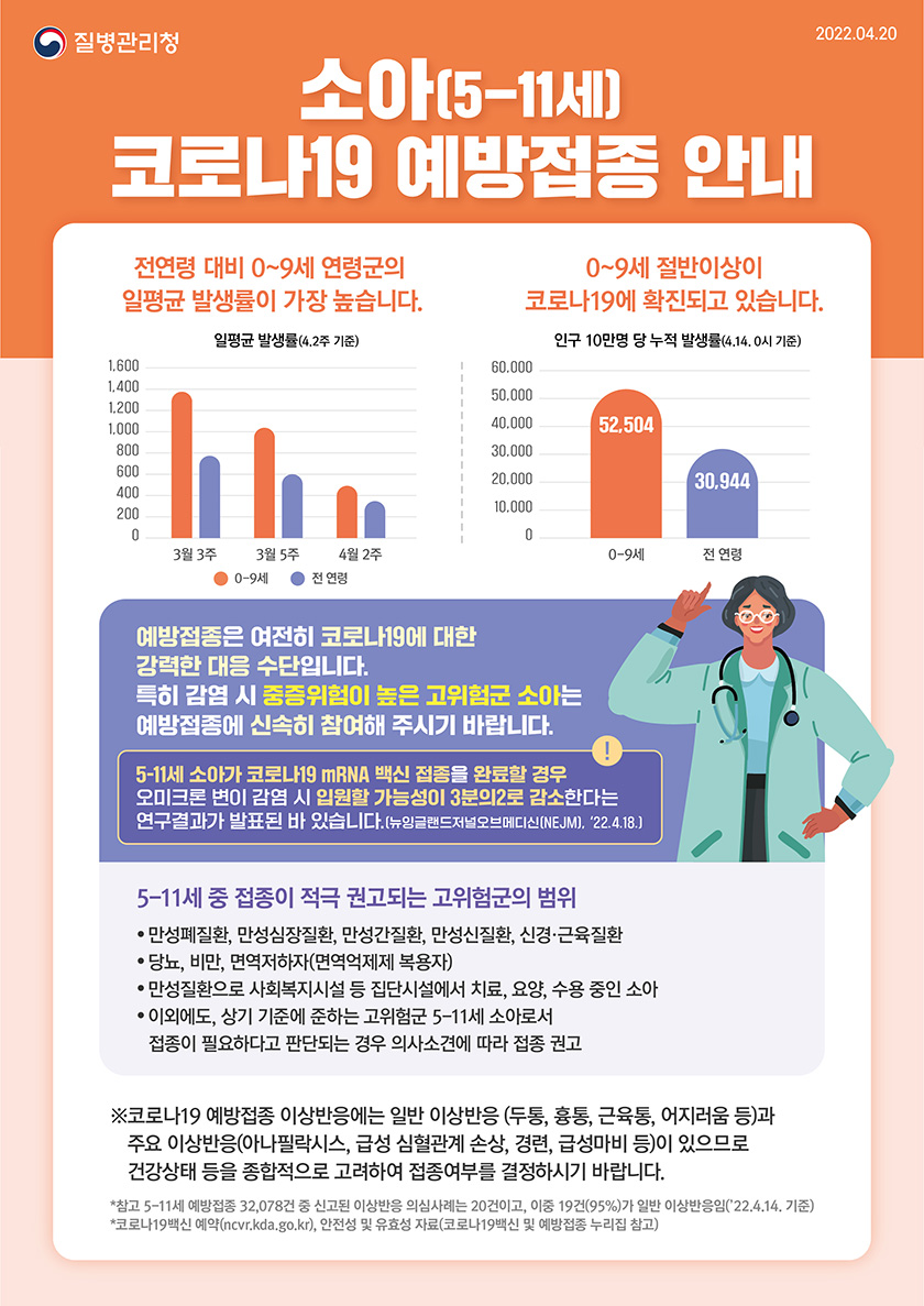 [질병관리청]소아(5-11세) 코로나19 예방접종 가정 안내문