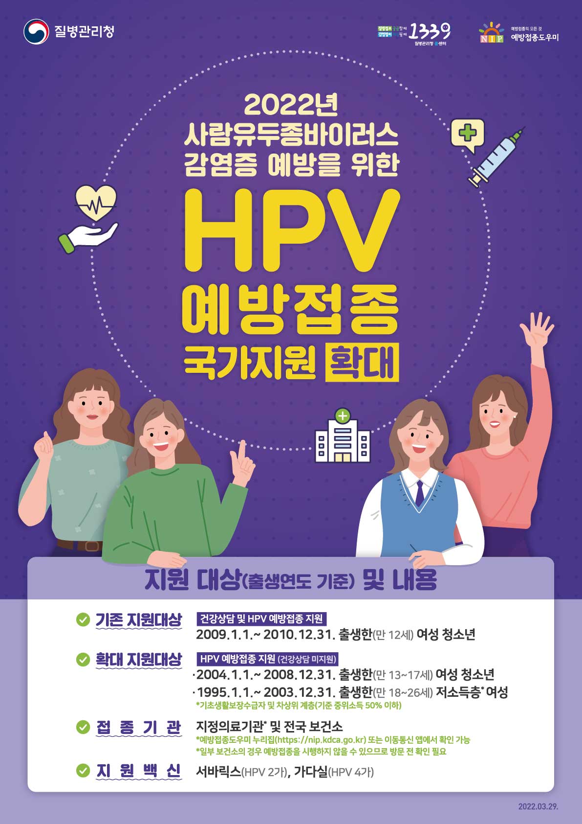 [질병관리청]사람유두종바이러스(HPV) 예방접종 국가지원 확대 포스터