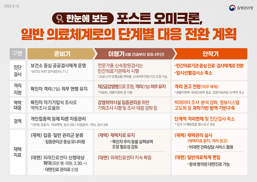 [질병관리청]포스트 오미크론, 일반 의료체계로의 단계적 대응 전환 계획