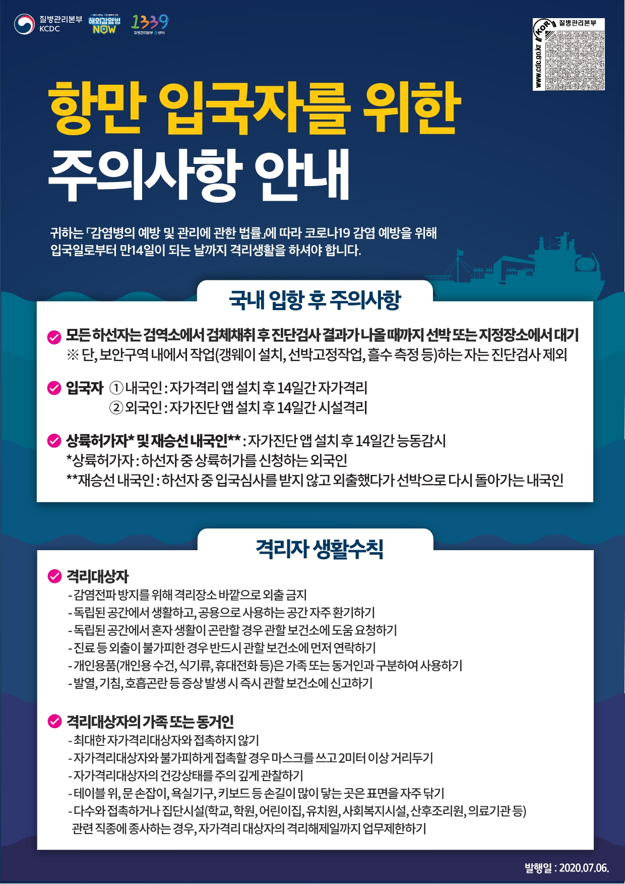 [질병관리본부] 항만 입국자를 위한 코로나19 주의사항 안내(4개 언어)