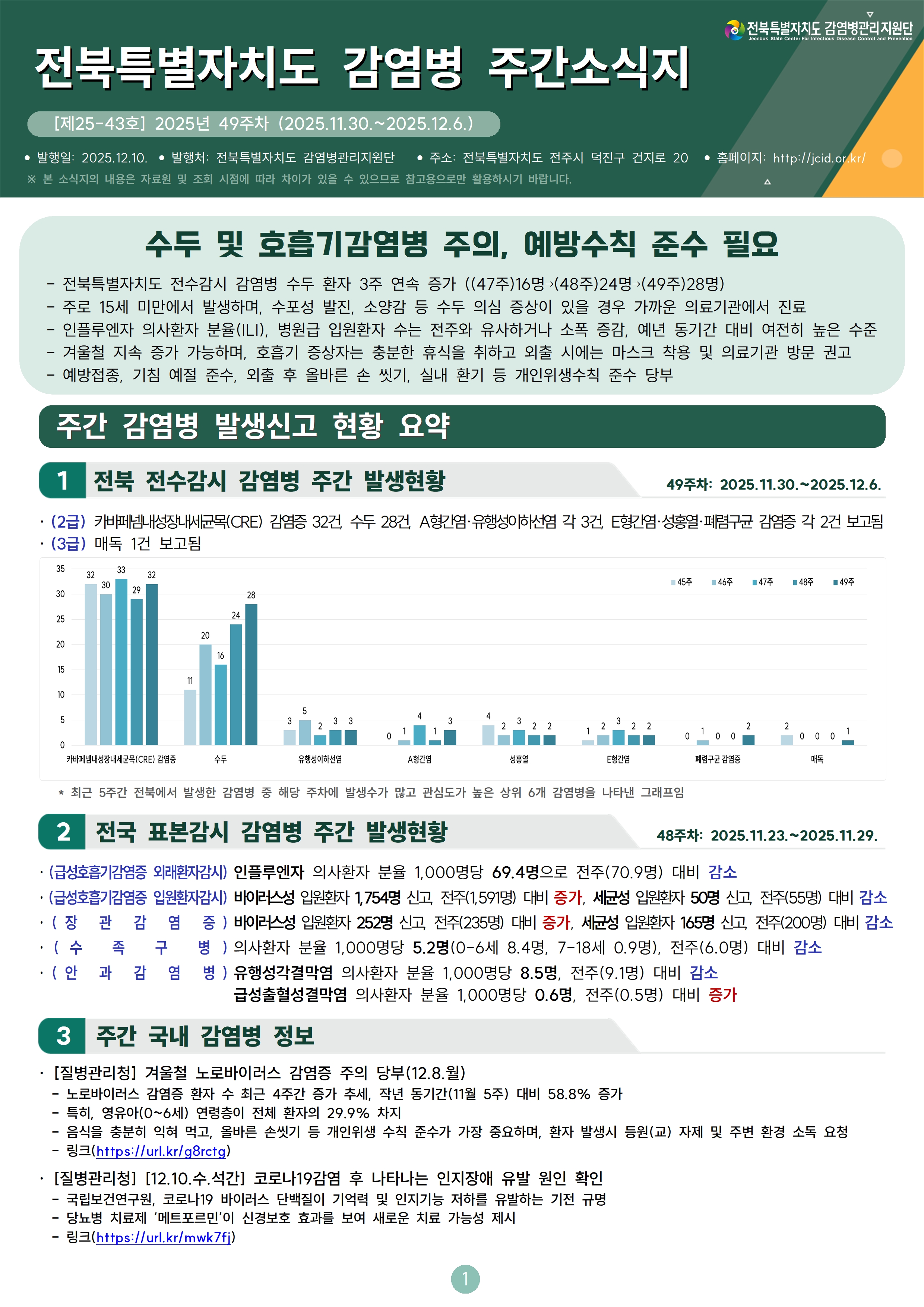 [제25-43호] 전북특별자치도 감염병 주간소식지 (49주차)