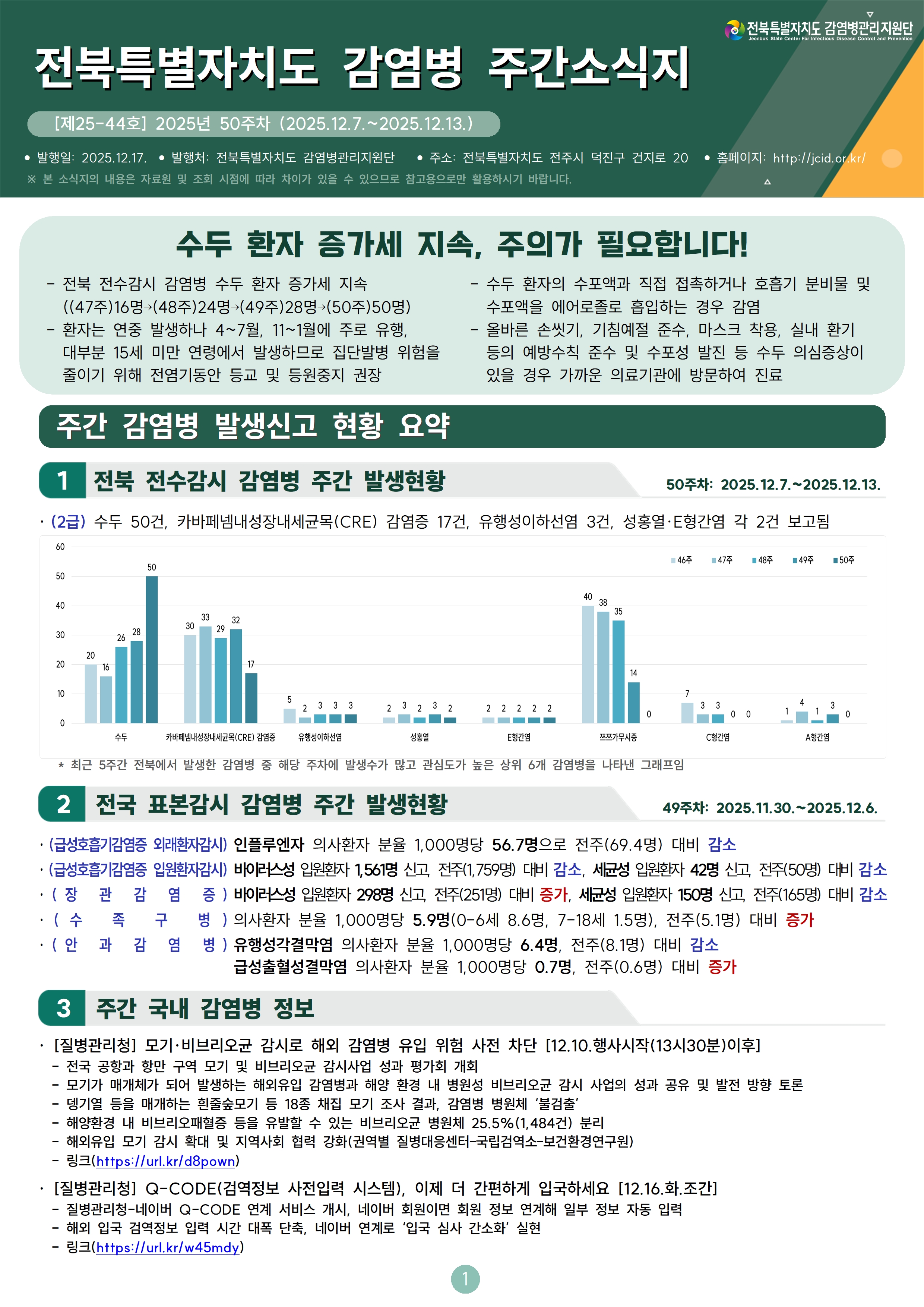 [제25-44호] 전북특별자치도 감염병 주간소식지 (50주차)