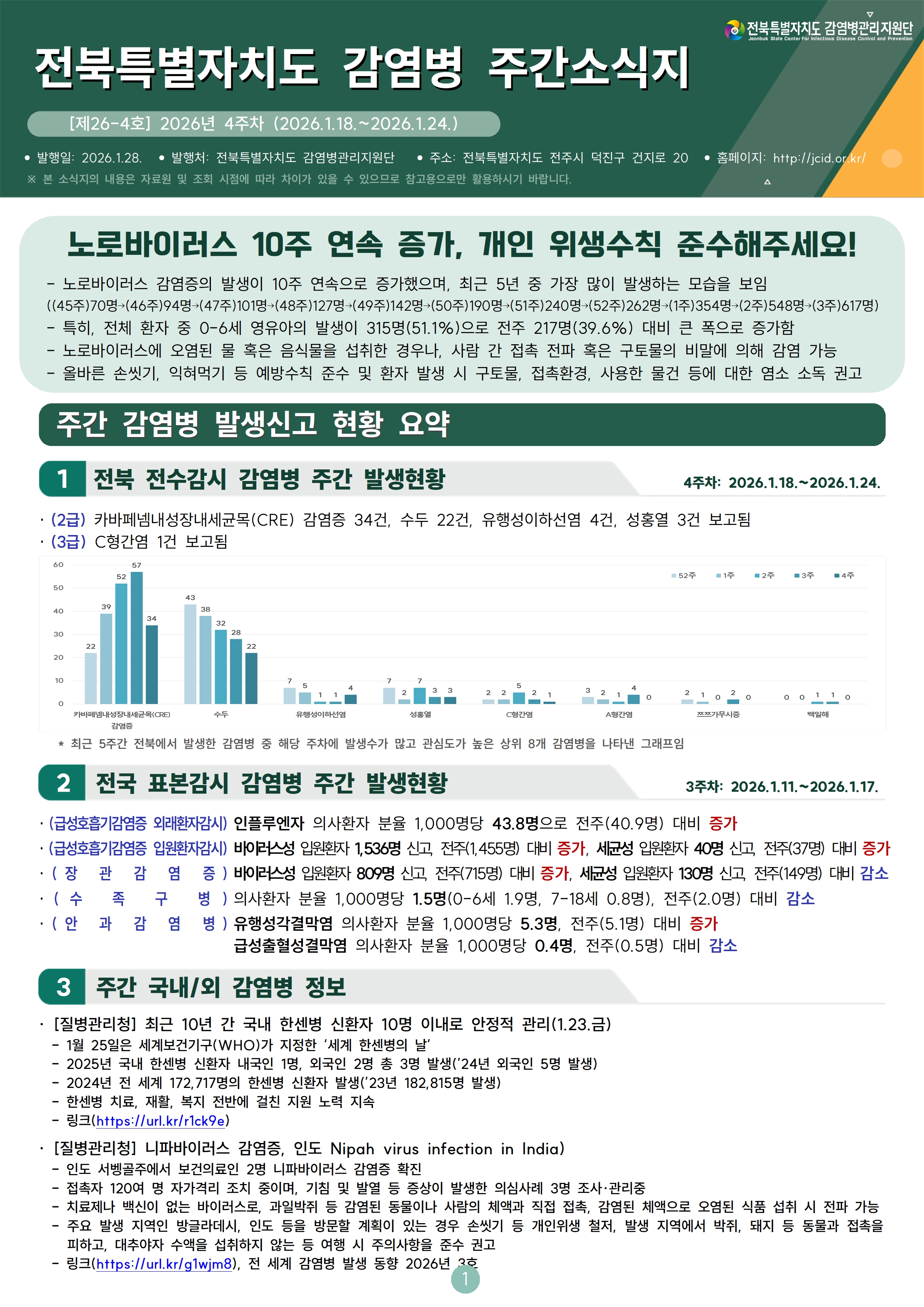 [제26-1호] 전북특별자치도 감염병 주간소식지 (1주차)