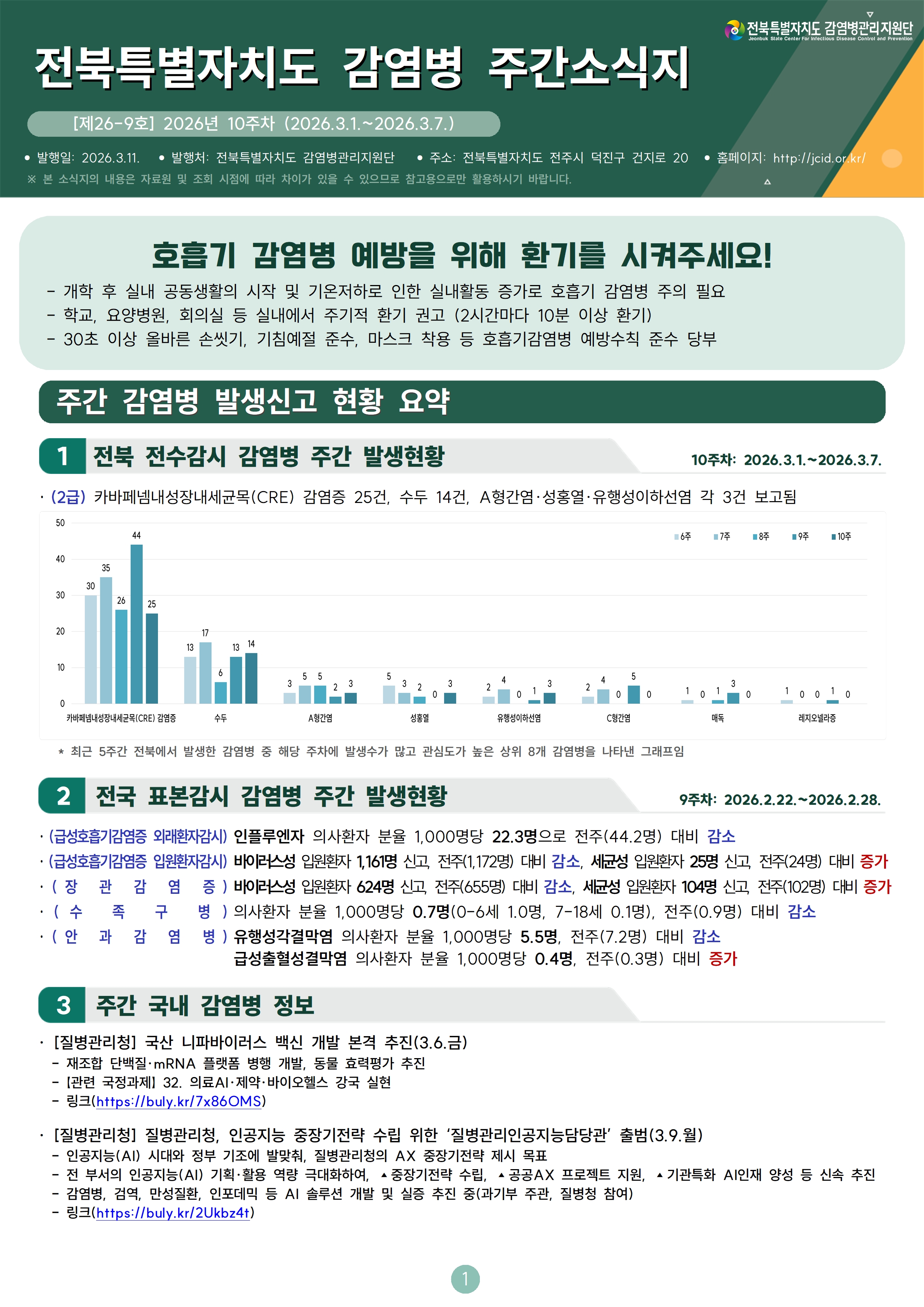 [제26-9호] 전북특별자치도 감염병 주간소식지 (10주차)