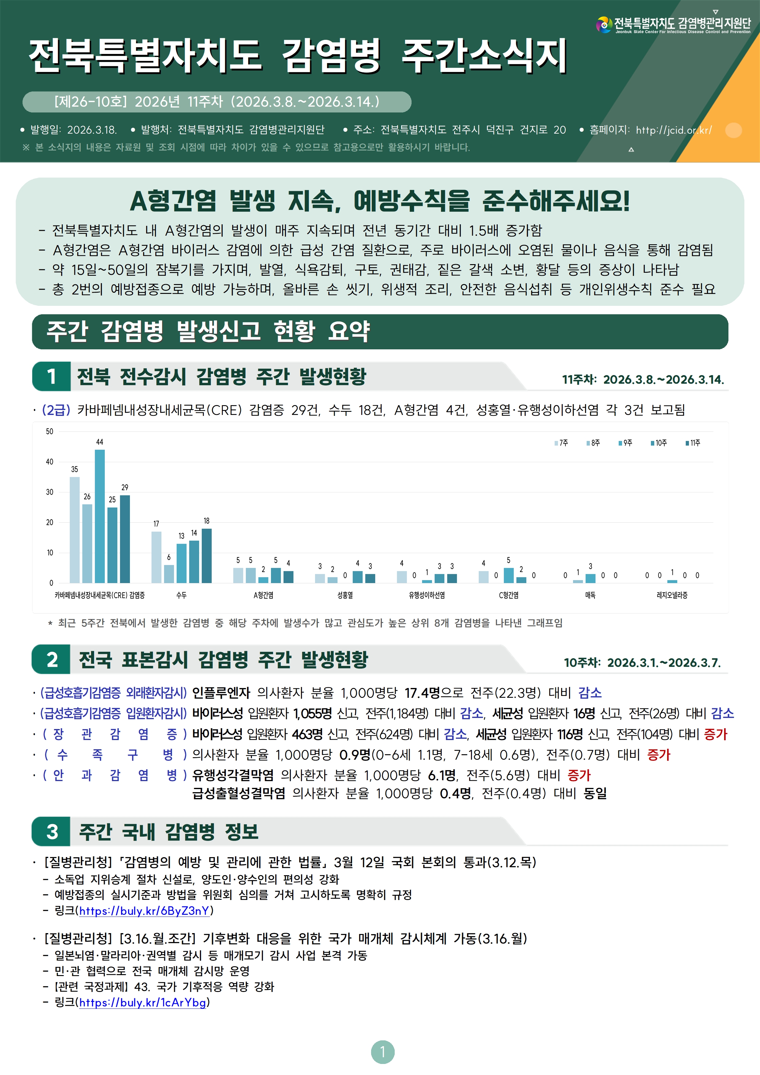 [제26-10호] 전북특별자치도 감염병 주간소식지 (11주차)