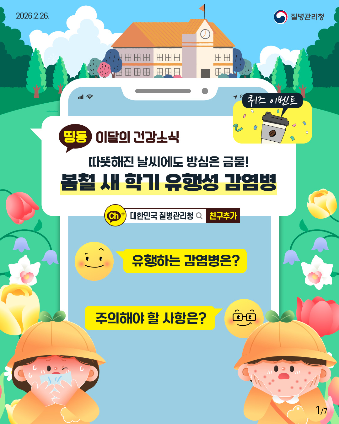 more+- [질병관리청] 따뜻해진 날씨에도 방심은 금물! 봄철 새 학기 유행성 감염병