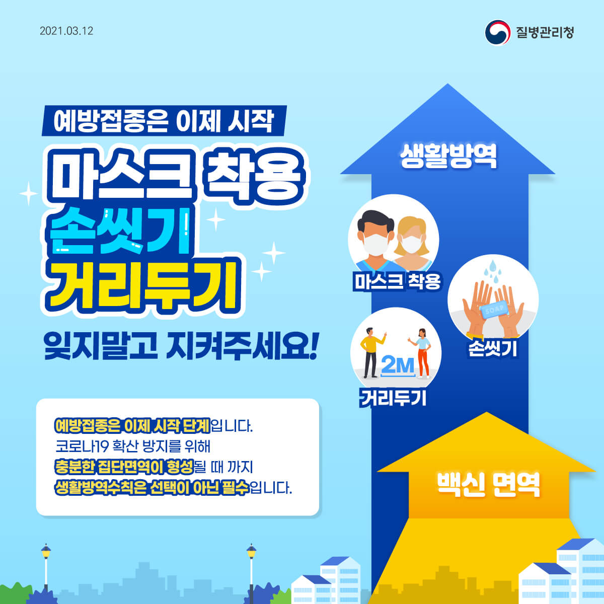 [질병관리청]예방접종은 이제 시작, 마스크 착용, 손씻기, 거리두기 잊지