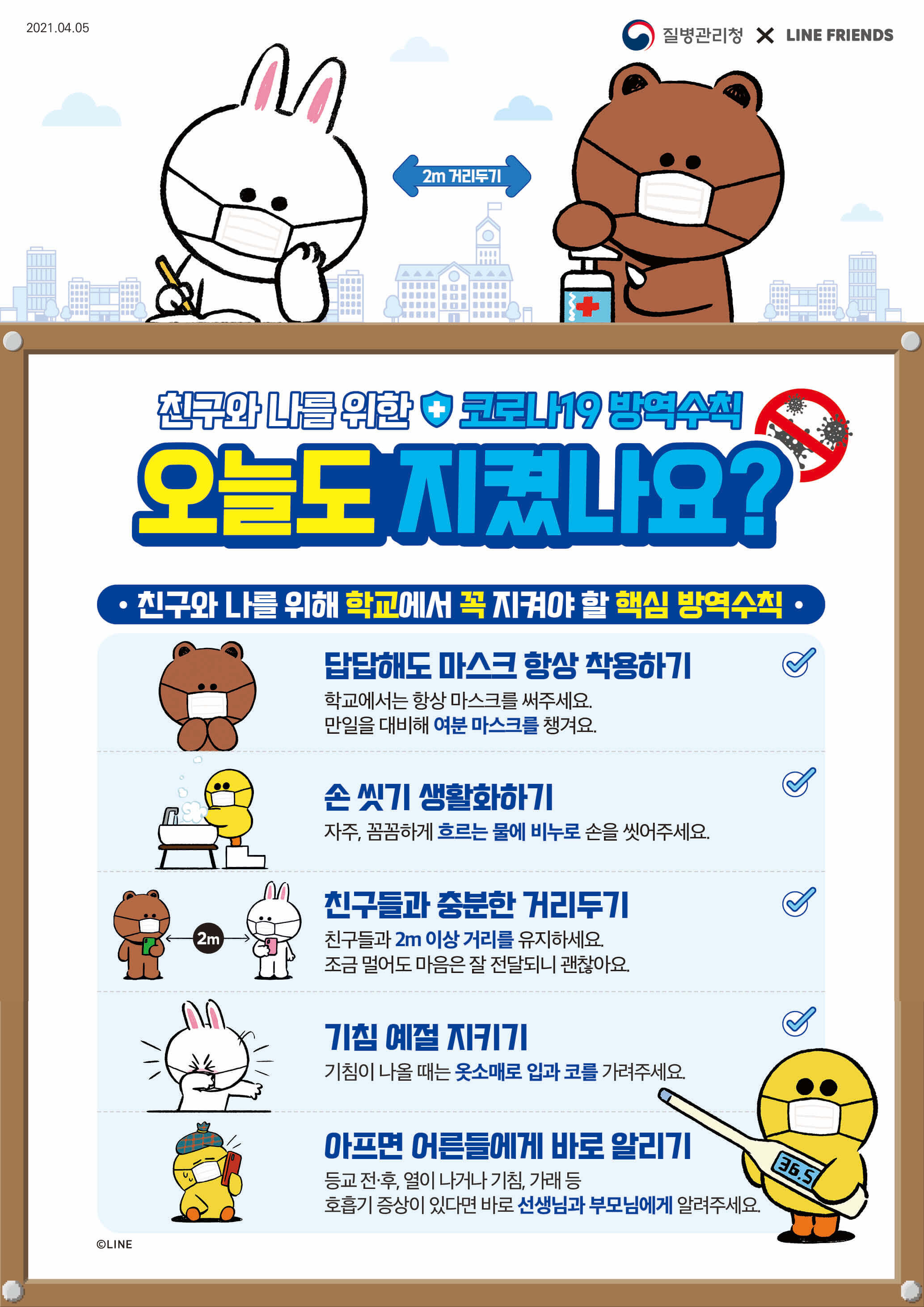 [질병관리청][교육시설용] 코로나19 방역수칙 오늘도 지켰나요? (안내문