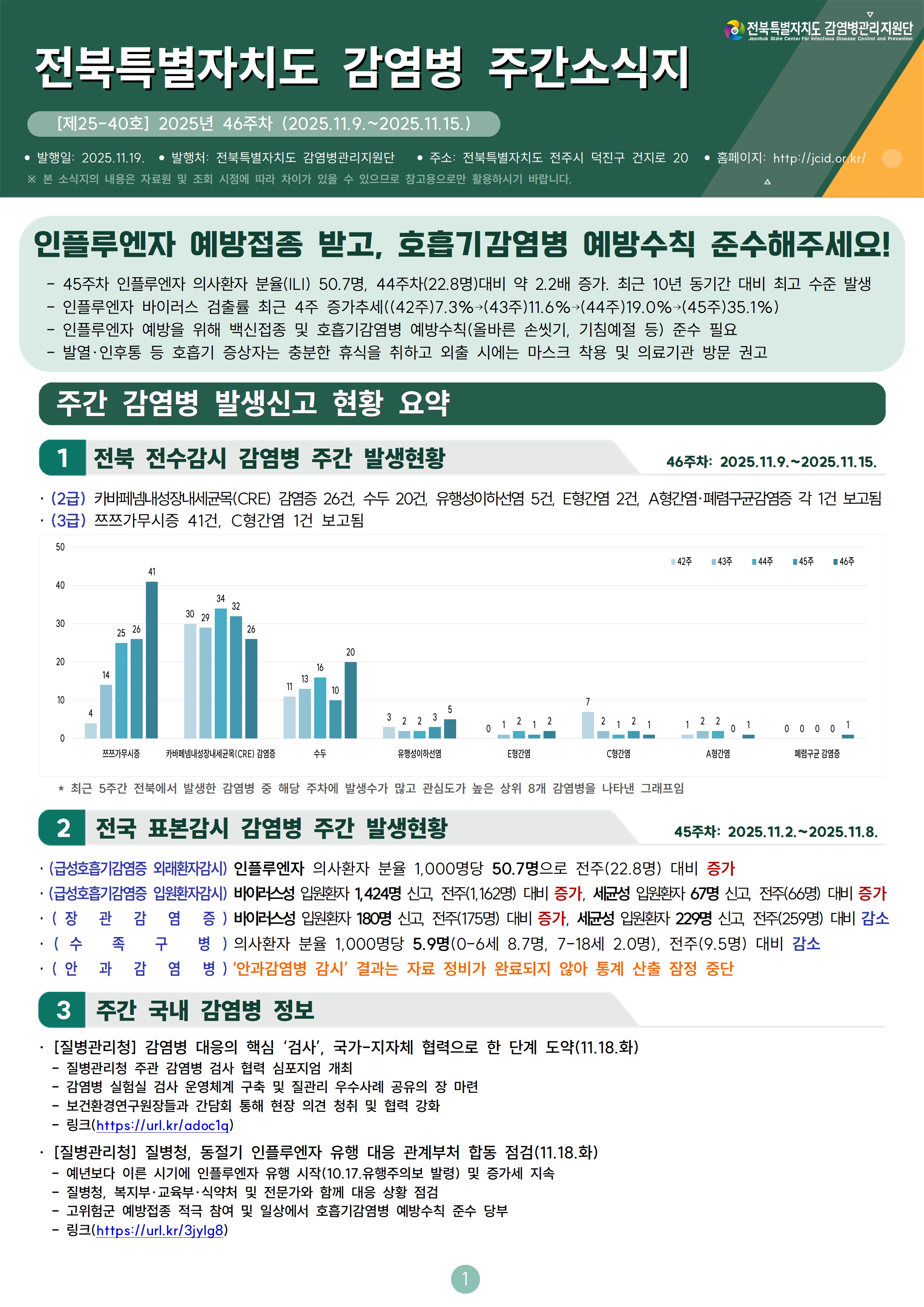 [제25-40호] 전북특별자치도 감염병 주간소식지 (46주차)