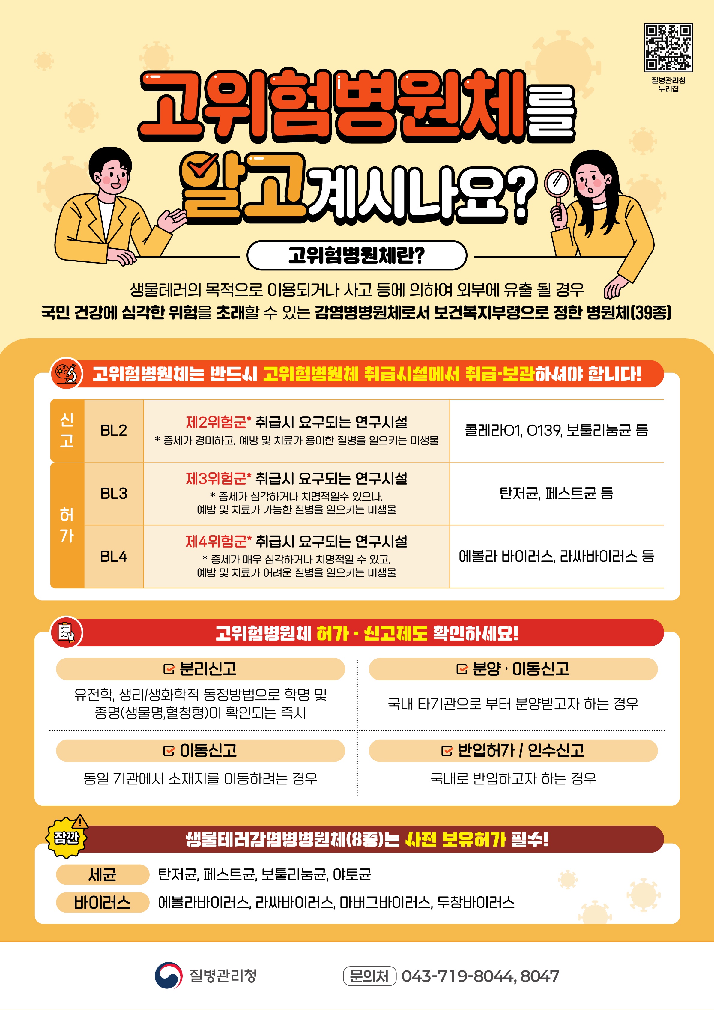 "질병관리청장이 지정하는 감염병의 종류 고시(질병관리청고시 제2026-3호)" 개정발령(2026.3.29.)에 따라 "2026년도 호흡기감염병 관리지침"을 일부개정하고 안내드리니, 업무에 참고하시기 바랍니다. * 개정 내용: 의무 격리입원치료 대상 감염병에서 성홍열 삭제(신구대조표 7쪽 및 본문 55쪽)출처: 질병관리청